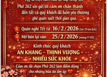 Phở 262 là quán phở gia truyền được hình thành từ năm 2015 tại Thành phố Hồ Chí Minh, khởi nguồn từ tình yêu sâu sắc dành cho ẩm thực truyền thống Việt Nam. Chủ quán là một du học sinh trở về từ Úc, nơi anh theo học chuyên ngành Quản trị Nhà hàng. Sau khi hoàn thành chương trình học, anh quyết định quay về quê hương để theo đuổi con đường gìn giữ và phát triển giá trị ẩm thực dân tộc.